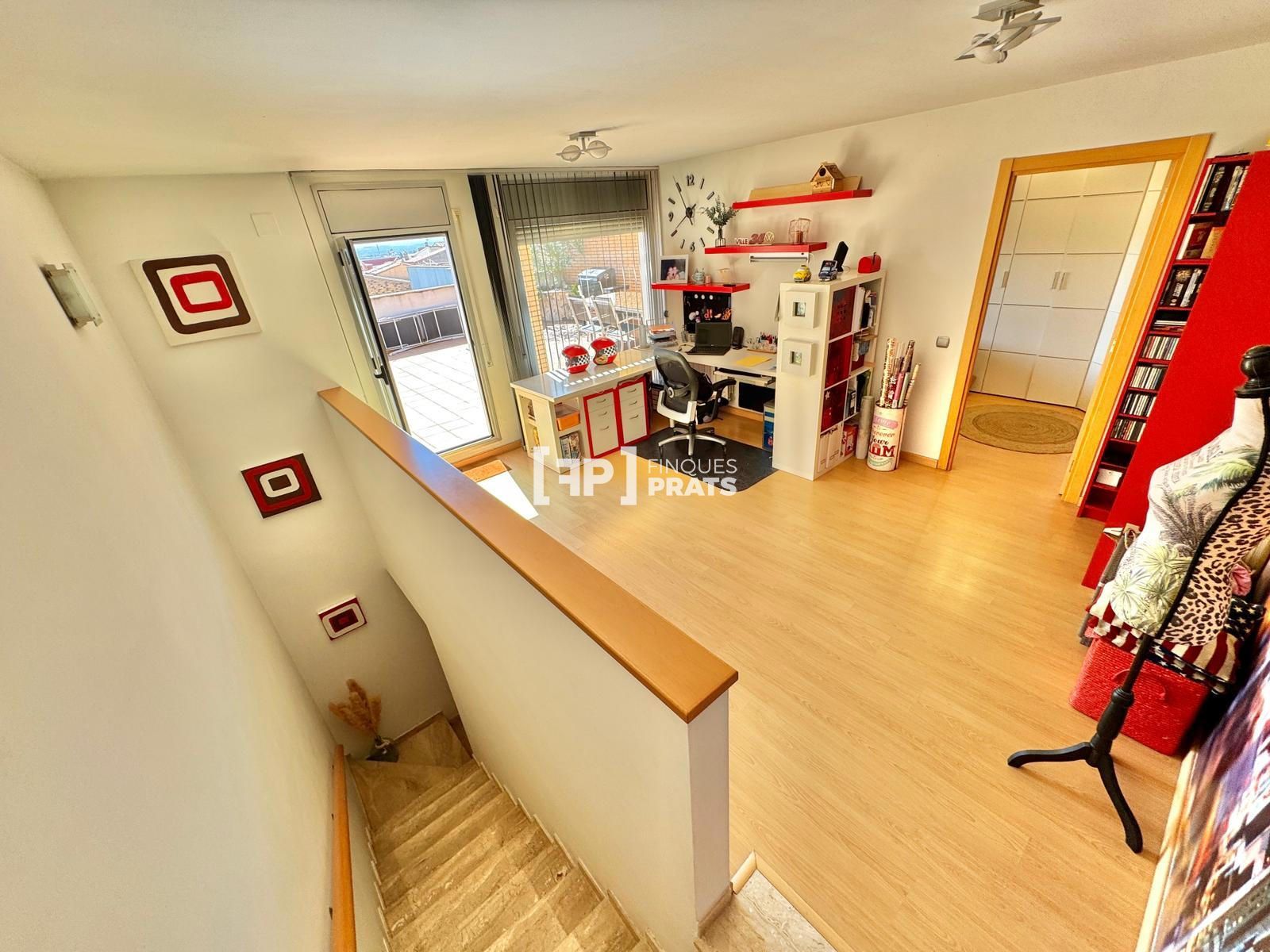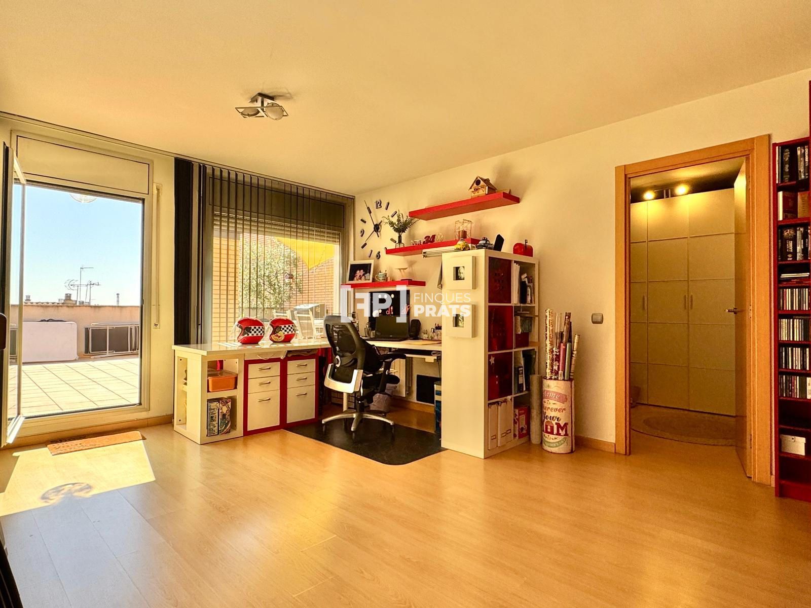 En la planta superior dispone de una sala diáfana, actualmente utilizada como despacho, con múltiples posibilidades de uso, una habitación doble adicional y acceso a una gran terraza exterior, ideal para disfrutar de espacio al aire libre.