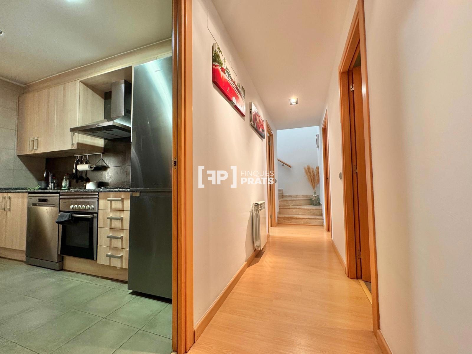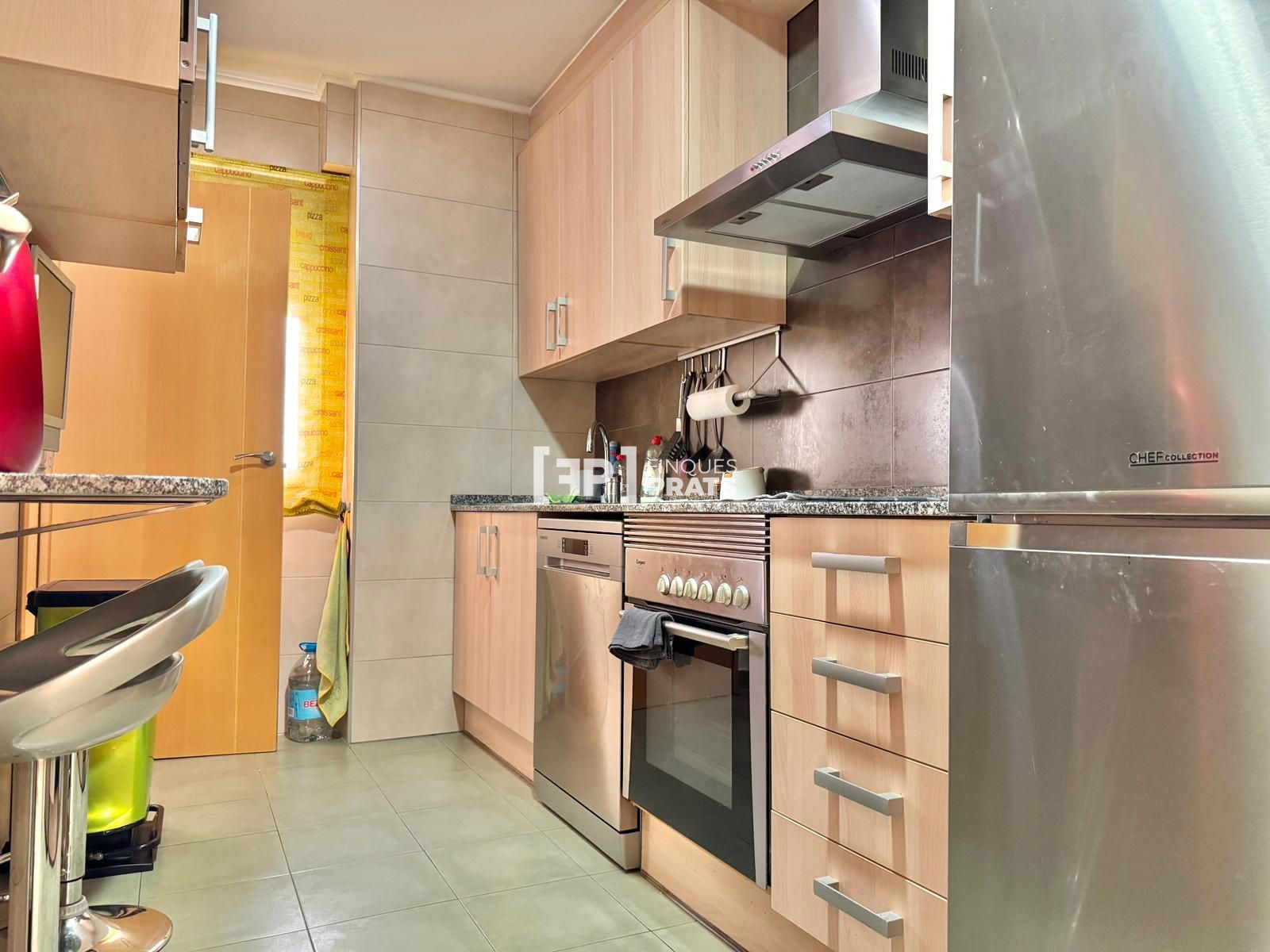 La vivienda se distribuye en dos plantas. En la planta principal encontramos un amplio salón-comedor con salida a balcón exterior, equipado con aire acondicionado, cocina independiente con acceso a galería, dos habitaciones dobles (una de ellas tipo suite con baño privado) y un segundo baño completo que da servicio al resto de la planta.